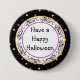 Purple Orange and Lime Green Polka Dot Happy Halloween Black Button