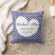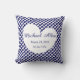 Keepsake Baby Throw Pillow, Cute Tiny White Polka Dot Hearts on Navy Blue Pillow, with baby's information in the White Heart label; Personalise with baby's name, birthday, and birth weight. Perfect for the nursery or as a gift for the new baby