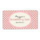 These labels feature a pink polka dot pattern, with a fully customisable front.
