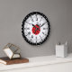 Cute retro style polka dot clock with a bright red polka dotted ladybug in the centre.
