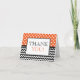 Stylish, all occasion thank you cards with white polka dots over orange on the top and a black & white chevron zigzag pattern on the bottom. The inside can be personalised with your own custom message or can be easily deleted to leave the card blank for handwriting your message.