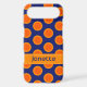 A bold contrasting colour dot style iphone case in bright orange and deep blue. Bright case design to help finding your phone easier. Customise with your first name or nickname. Currently reads Janette.