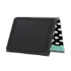 Stylish iPad Air 2 folio style case with built in stand done in a black and white polka dot. A mint green band, running down the right front edge and a decorative mint green disc, on the middle front, has a black one letter monogram ready to personalise. Makes a great personalised gift idea.
