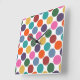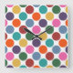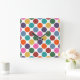 Custom Wall Clock has a cute, fun multicolored polka dot design in red, green, yellow, blue, orange, pink, teal, and purple.