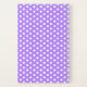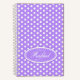 Bold modern graphic polka dot patterned graphic purple notebook. Personalise with your own name and initial. This example reads: Rachel D. Designed by Sarah Trett for www.mylittleeden.com