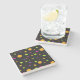 The coasters are gorgeous, a quality feel and heavy weight. They look like a precious archeological find. A rustic stone juxtaposed with a modern floral black and white print. I like the way the print goes slightly imperfect on the cut stone edges giving them a kind-of natural beauty.