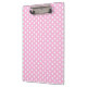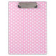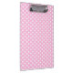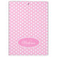 Modern bright pink polka dot pattern clipboard. Customise this clipboard with your name and your family initial on the outside of the clipboard. Currently reads Victoria R. Ideal personalised gift for girls and women studying at school, college or university whom want a distinctive named clipboard to use to make notes. Designed by Sarah Trett.