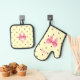Polka dot pink and bow oven mitt & pot holder set