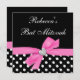 Polka Dot Pink Black Bow Heart Bat Mitzvah Invitation