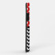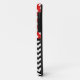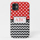 Stylish iPhone 5 Casemate Barely There Case designed with white polka dots over red on the top, a black & white chevron zigzag pattern on the bottom, and personalised with your initials in the middle.