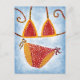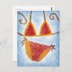 String Bikini in colourful yellow and red with polka dots over a blue background.
