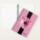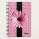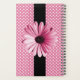 Pretty all purpose daily planner done in a pink and white polka dot pattern. A black band runs down the middle of the front and back and is decorated with graphics of a large pink flower bloom. Customise the custom text to read you want. Perfect for home, office, or back to school.