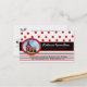 Fun teacher's business card done in black, red, and white, with polka dots and stripes. Graphics of a school bus filled with ladybugs next to a little red school house, decorates the left side of the card. The back has a white background and text for teacher / parent conferences and decorated, with a cute ladybug holding a note. Personalise all the text front and back to suit your needs. Great for teachers and tutors.