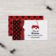 Stylish mummy networking card done in white, with pretty black and red polka dot pattern, on the left side, and edged with a red ribbon and bow. A red wagon silhouette decorates the upper white side of the card, with custom black text below it. Personalise this fun card as a great way to stay in touch with other moms for arranging parties, play dates, and baby sitting.
