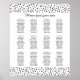 Modern seating charts Poster with black polka dots is perfect for wedding celebration. This template is set up and ready for you to overwrite with all your own details.