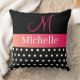 Polka Dots Black White Pink Monogram Script Tote Bag