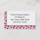 Pink and black polka dotted business card.