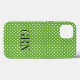 Polka dots Case-Mate Phone Case Apple iPhone 13 barely there. Elegant apple green polkadots pattern design with custom monogram. Personalised phone cover with name initials. Trendy Birthday or Christmas gift idea. Also available for older models and other brands. Customisable colours.
