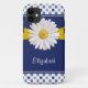 Navy blue, sunny yellow and white polka dots, daisy and ribbon personalised iPhonecase. A fun, girly design to help protect your iPhone. You can personalise the name. To change the name, use the personalise options. For more extensive changes, including changing the font, font size, font colour and/or text placement, use customise it.