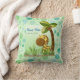 Adorable baby welcome pillow features a jungle theme with polka dots in pastel green and blue. Sweet baby giraffe and Coconut Palm for a cute, contemporary nursery theme. Customise with baby's name and date of birth..