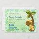Adorable jungle theme features polka dots and pastel green and blue background with sweet baby giraffe and Coconut Palm for a cute, contemporary baby shower invitation. All text is ready for you to customise. Remember to personalise the card back text as well with registry information or delete.