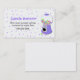 Whimsical children play date calling card, done with a green and lavender, on white, polka dot background. A pastel lavender coloured gumball machine decorates the bottom right corner. Personalise the text for child. Great way to stay in touch with other moms and arrange play dates, birthday parties, and baby sitting co-ops.