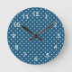 Polka Dots on Dark Blue Round Clock
