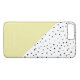 Modern iPhone case featuring black polka dots pattern and light yellow accent. This customisable case will be perfect as a gift.
