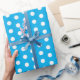 Bright blue background with white polka dots, a fun design for birthday, Easter, graduation, promotion, anniversary, kids' birthday, special occasion, celebration, for family, besties, your dotty friend, co-worker, office party, full moon party, spring equinox celebrations, we're seeing dots! The polka dots are in a staggered repeating pattern. Bright colours bring good cheer and smiles. Blue is a colour of mental refreshment, dreams, truth and harmony. Bright blue relates to the imagination. Happy Day!