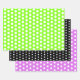 Purple, bright green and classic black backgrounds, with white polka dots, a fun design for birthday, special occasion, celebration, for family, kids, your dotty friend, co-worker, office party, Easter party, spring equinox celebrations, we're seeing dots! The polka dots are in a staggered repeating pattern. Bright colours bring good cheer and smiles, and polka dots never go out of style. Happy Day!