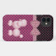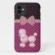 Cute iPhone 5 case done in pink and black, with a two tone polka dot background. Graphics of a pretty light pink and black polka dot ribbon and bow stretches across the middle and a cute light pink poodle decorates the bottom, of the case. Customise to add any text you want. Sweet case that makes a nice gift idea.