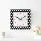 Polka Dots Squared- Black, White & Red Square Wall Clock