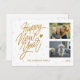 Polka Dots Two Photos New Year Gold Calligraphy Postcard