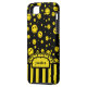 Cool tiny yellow coloured polka dot happy face pattern design on black. Retro stripe flower monogram ribbon, Personalise with your name