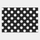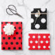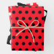 Polkadot wrapping paper featuring red, black and white polkadots.