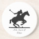 It features a rider about to strike the ball with the mallet and the polo pony about to leap away.
