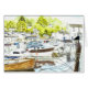 Picturesque Polperro Harbour; high tide and glassy water; local boats and their mirror-images. From original watercolour by Christine Hudson. (A selection of Christine's original paintings and images are on sale in the Ebeneezer Gallery, near the top-end of the village; also in Gina's Studio Gallery, right by the harbour; and on certain items in Polperro Post Office).