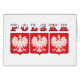 Row of three Polish eagle shields, the coat of arms of Poland with the word Polska in the Polish flag colours. Great Polish heritage gift idea.