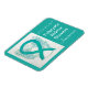 Polycystic Kidney Disease uses a teal ribbon to support awareness for its cause. The custom magnet features a teal awareness ribbon guardian angel art magnet with the message "Support Polycystic Kidney Disease Awareness". The teal awareness angel ribbon art can be customised with personalised messages to make great cause merchandise magnets for fundraisers, awareness gifts, or other special cause events or occasions.