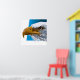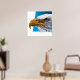 Polygon eagle head with blue shape background Poster