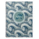 This beach theme notebook features a Polynesian ocean pattern of teal and white waves, decorated with dots, and loverly teal blue flowers. Your monogram initial and name appear on a circle of light teal, with the initial in dark teal and the name in foamy off-white. Make sure to type your information in the Personalise box.