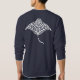Gorgeous sweatshirt with a decorative tribal tattoo design. The back has a large white manta ray. The front has a smaller ray. Polynesian tribal art sweatshirt.