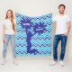 Pom Pom Cheerleader Love to Cheer Fleece Blanket Blue chevron stripes.