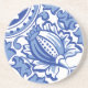 Pomegranate Bloom showcases a richly detailed fruit motif surrounded by flourishing foliage and baroque scrollwork. This design blends traditional Ottoman or Persian tile artistry with a contemporary two-tone palette of vivid and soft blues. The dynamic pomegranate form, symbolising abundance and life, becomes the centerpiece of a tile that's both decorative and meaningful.