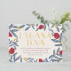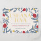 Red, blue and gold Rosh Hashanah dinner invitation featuring a pomegranate tree illustration by Shelby Allison.