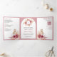 Pomegranate Pink Floral Pampas QR Code Wedding Tri-Fold Invitation