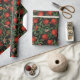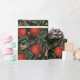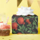 Pomegranate branches with lush leaves and rich red fruits stretch across a black background. A secondary layer subtly fades away, adding depth. Traditionally painted on paper with markers, the elements are scanned and composed into a pattern in Photoshop.