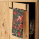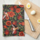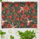 Pomegranates and hummingbirds/green leaves on blac tea towel