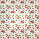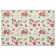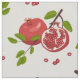 The fabric features painted red pomegranates, flowers and green leaves on a white background.
