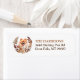 The left side of these return address labels feature a portrait of an adorable Pomeranian dog. The image is enclosed within a pretty autumn floral and leaf wreath in tones of brown, tan, and cream. Your custom text is in brown and gold brown at the right.